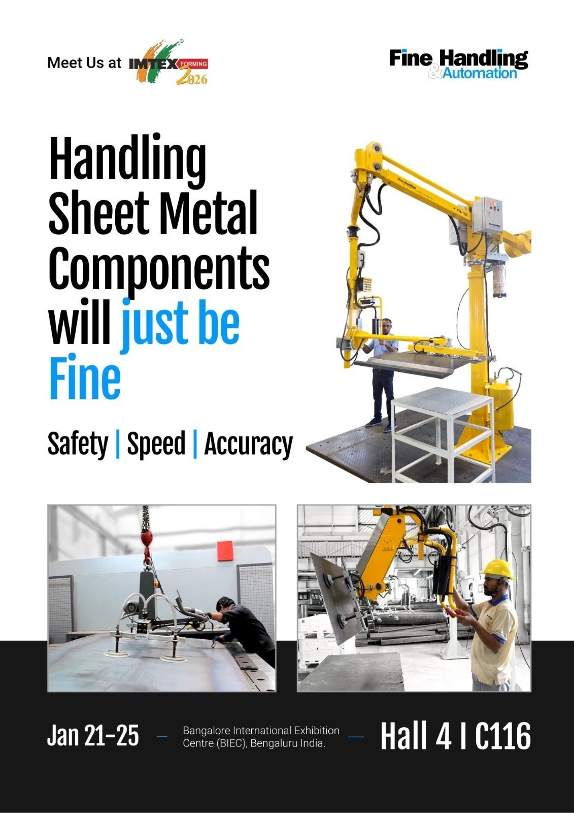 Fine Handling offers industrial manipulator, customised material handling solutions and automation for critical tasks. With over 20 years of recognition for innovations, expertise, and demonstrated success, Fine Handling has been a solution partner to all types of companies, starting from MSMEs to some of the world’s largest firms. Fine Handling’s material handling solutions are driving better productivity, safety and ergonomics in multiple industries and applications.